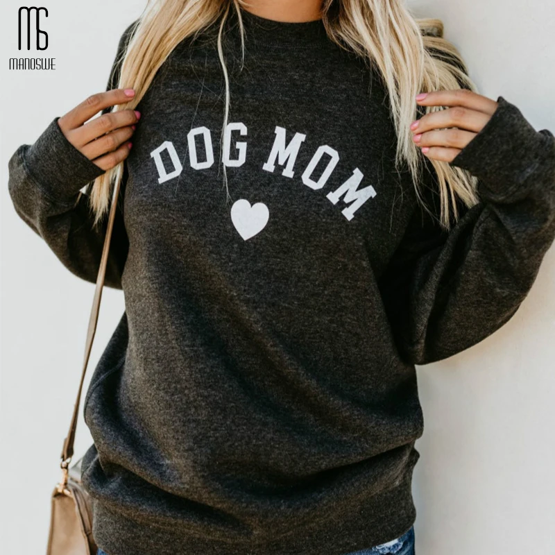 New Manoswe Crew Neck Dog Mom and Cat Mom Kawaii Letter Prints Long Sleeve Hoodies Women Sweatshirt Top