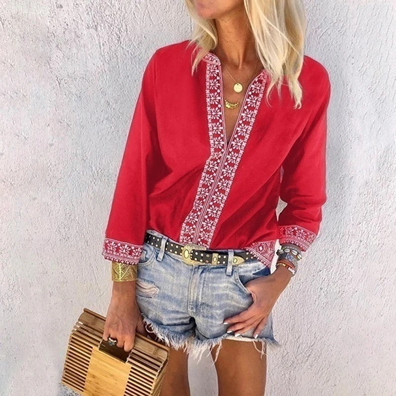 Best Retro Tops And Blouses Women Digtal Printed Shirts Autumn Long Sleeve Blouses Casual Female Work We