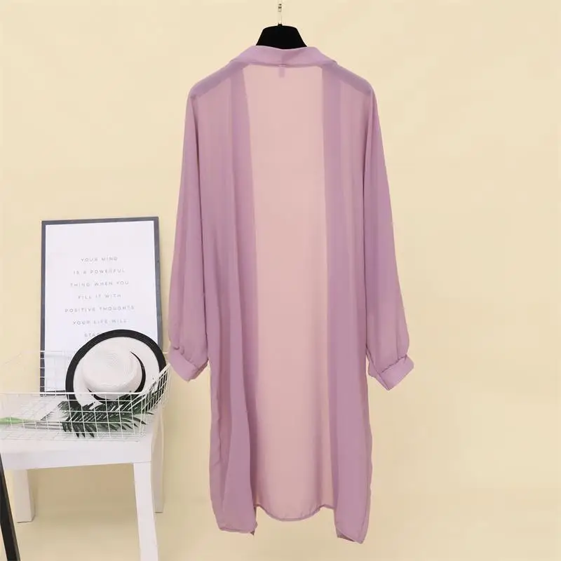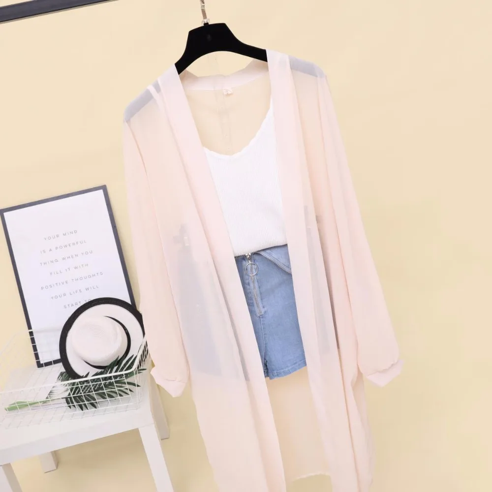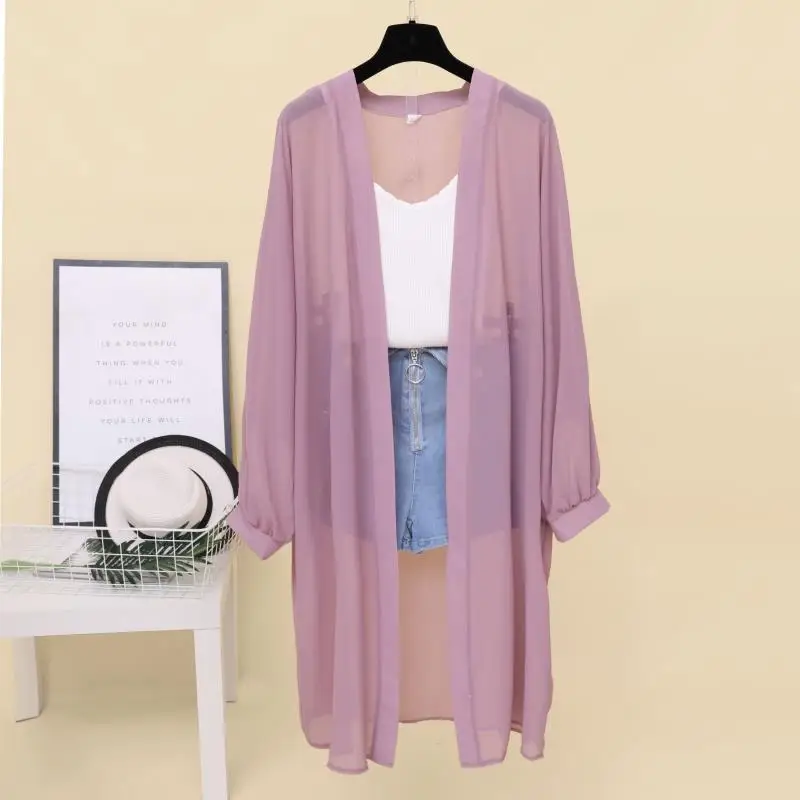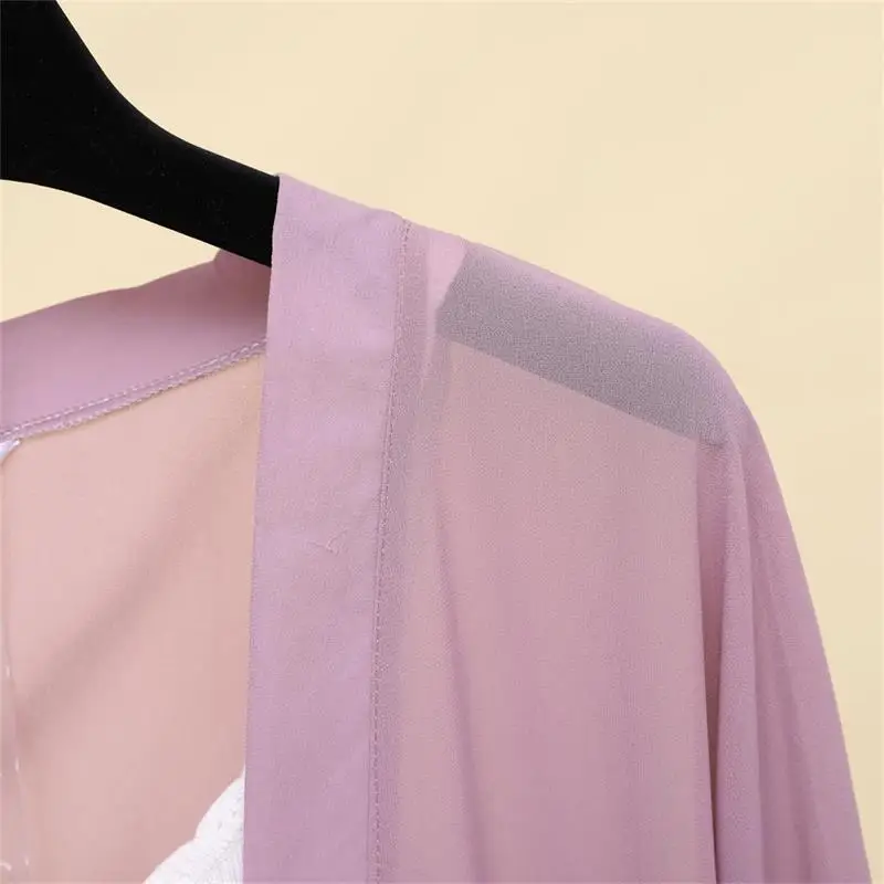 Buy Women Summer Kimono Cardigan Long Sleeve Sun Protection Blouse Shirt Long Chiffon Sunscreen Solid S