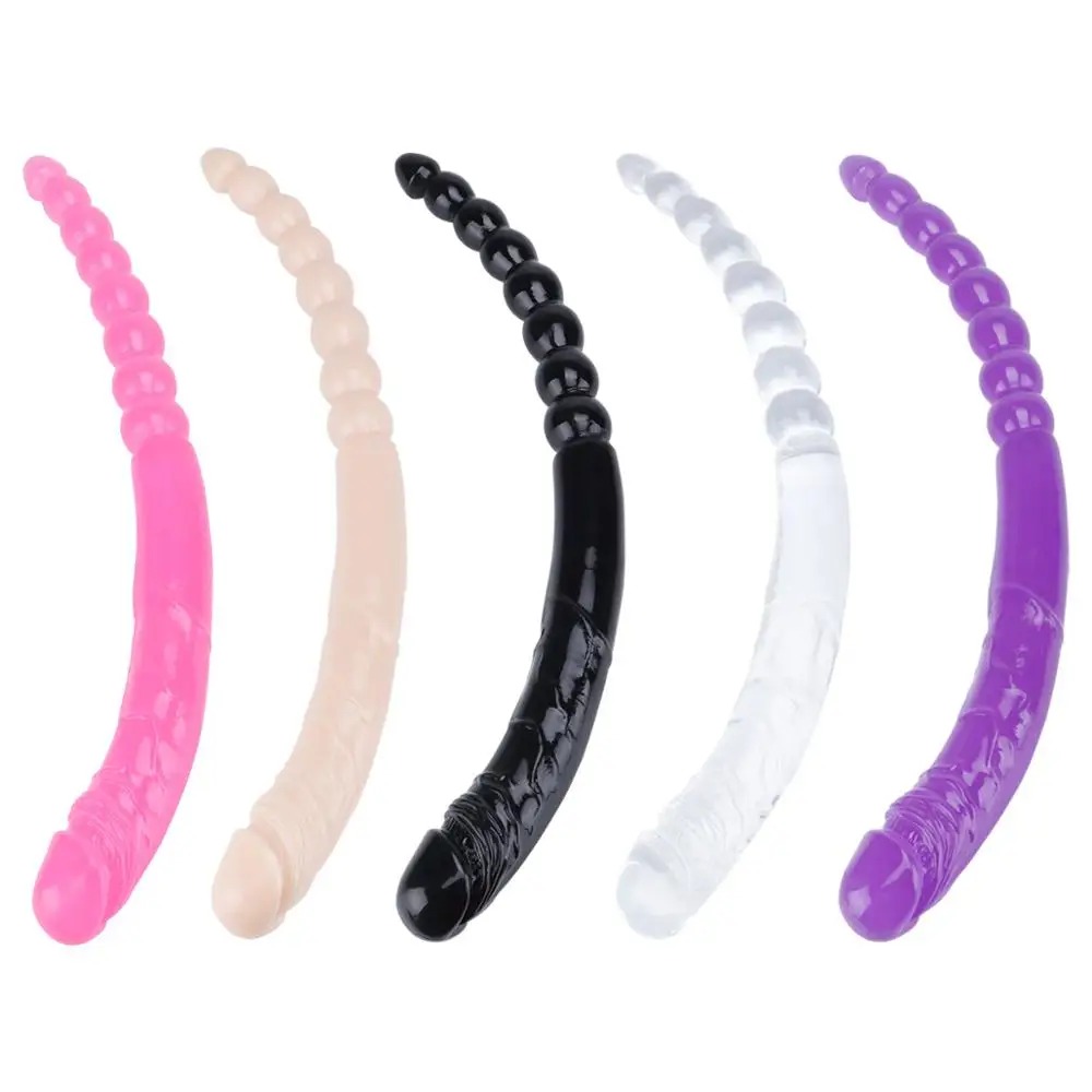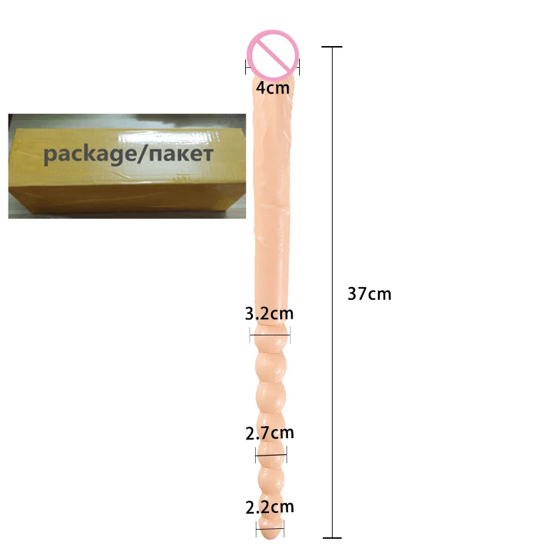 New 37cm Super Long Double Heads Anal Beads Dildo Realistic Artificial Penis Anal Plug Lesbian Fetish H