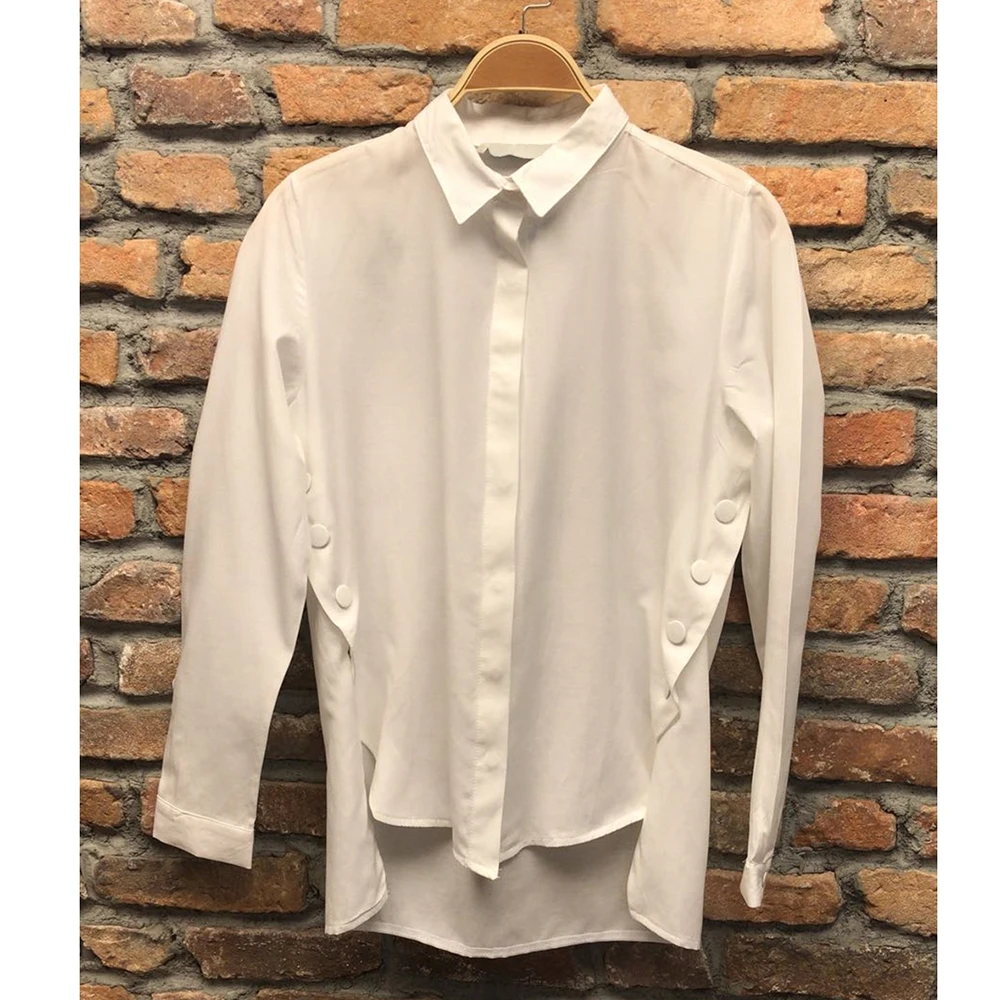 New Split Hem Button Detail Tunics Women 5XL Plus Size Chiffon Shirt Casual Turn-down Collar Long Sleev