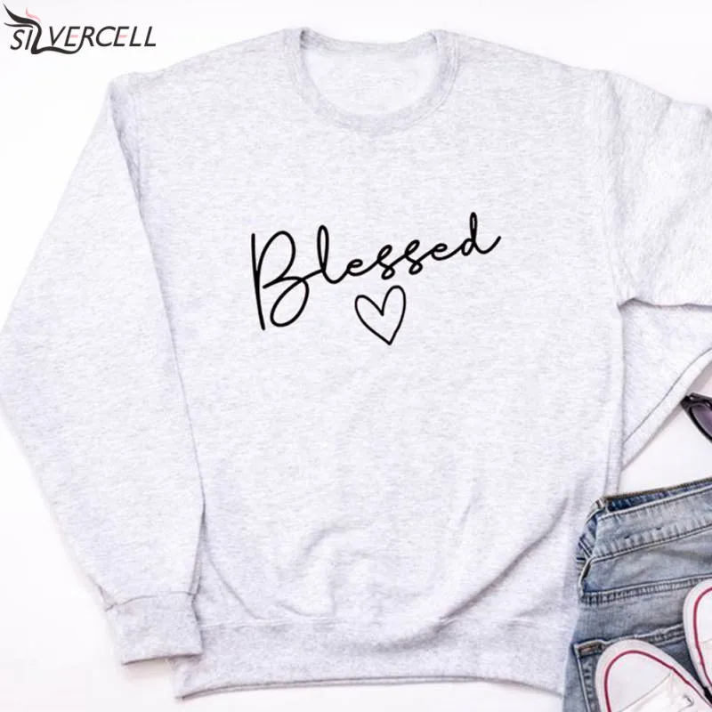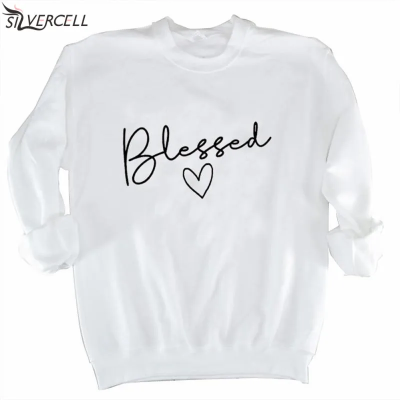 Promo Tops Women's Sweatshirt Autumn Long Sleeve Pullover O-neck Blessed Letter Casual Loose Plus Size Sw