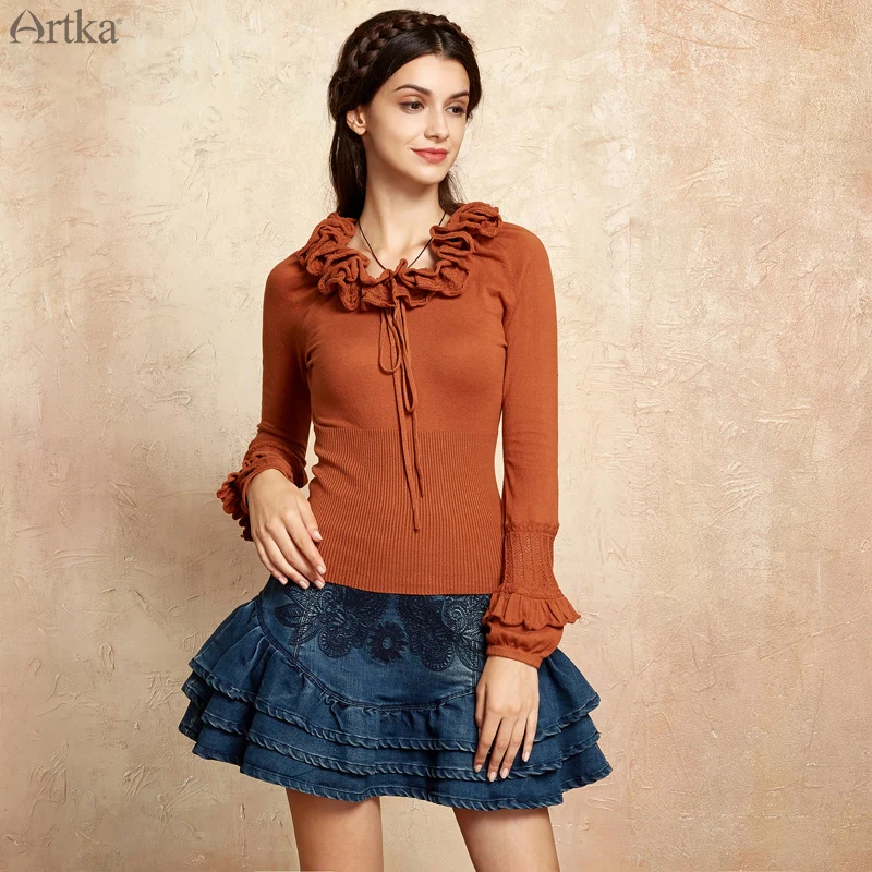 Today i want to review about CLEARANCE ARTKA Winter Female 100% Cotton Wooden Ear Pullovers Lanterns Sleeves Elegant Lace Comfor. I uncover this cool product from China Online Store, best manucafturer.