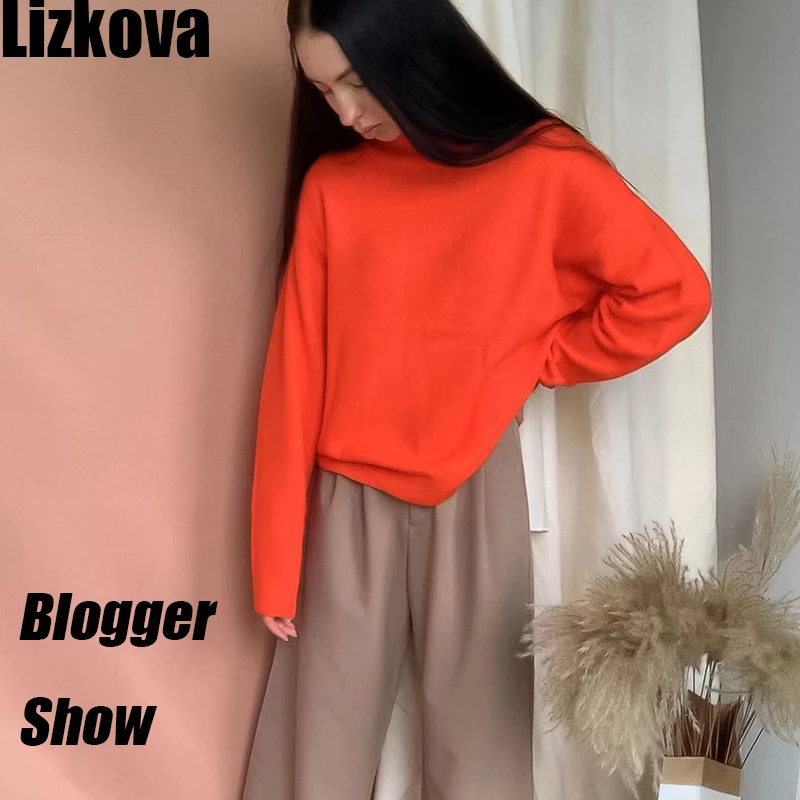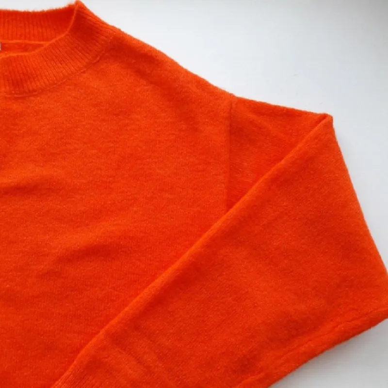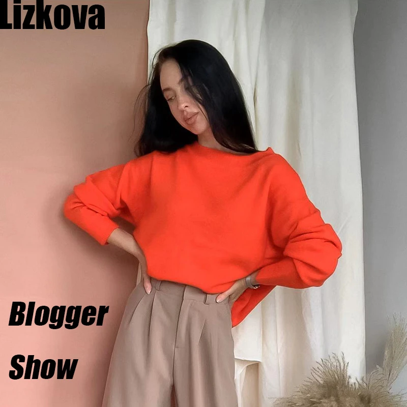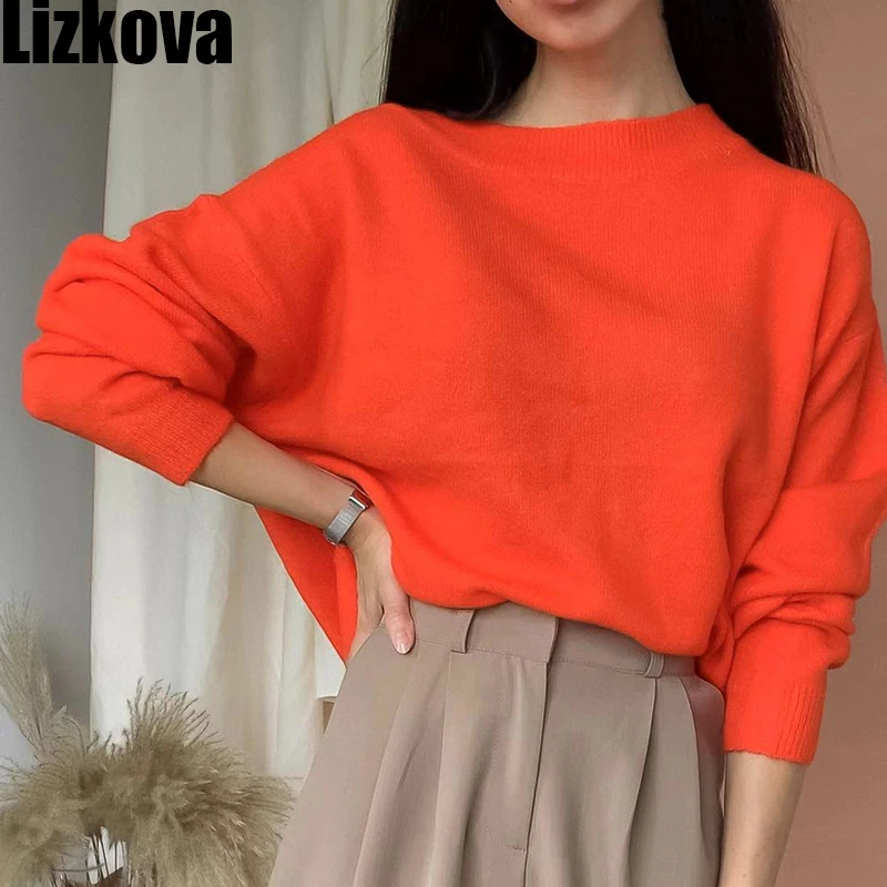 Best Fall Female Sweater Orange Red Knitted Sweater Woman Pullover Sweater O-neck Long Sleeve Sweater