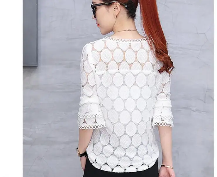 Best New 2018 AutumnFashion Style lace Women Blouses casual flare Sleeve solid ciffion Tops Plus Size wo