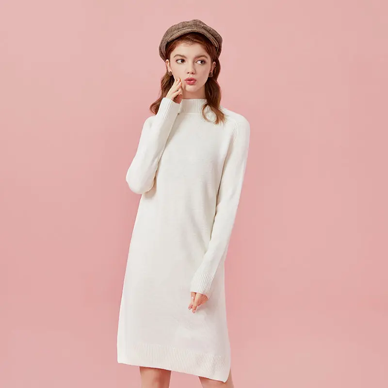 Buy SEMIR Women Wool-Blend Mock-Turtleneck Sweater Dress Rib Knit Women Ribbed Dress with Long Raglan S