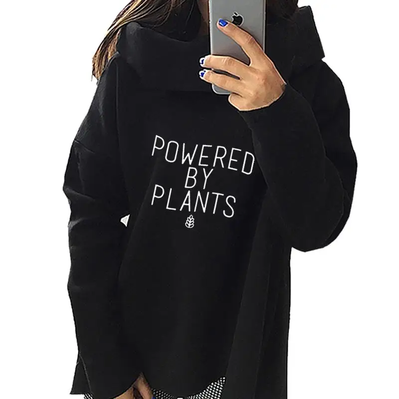 Best 2019 New Fashion Powered By Plants Print Tops Sweatshirt Femmes Hoodies Women Vegan Casual Print Co