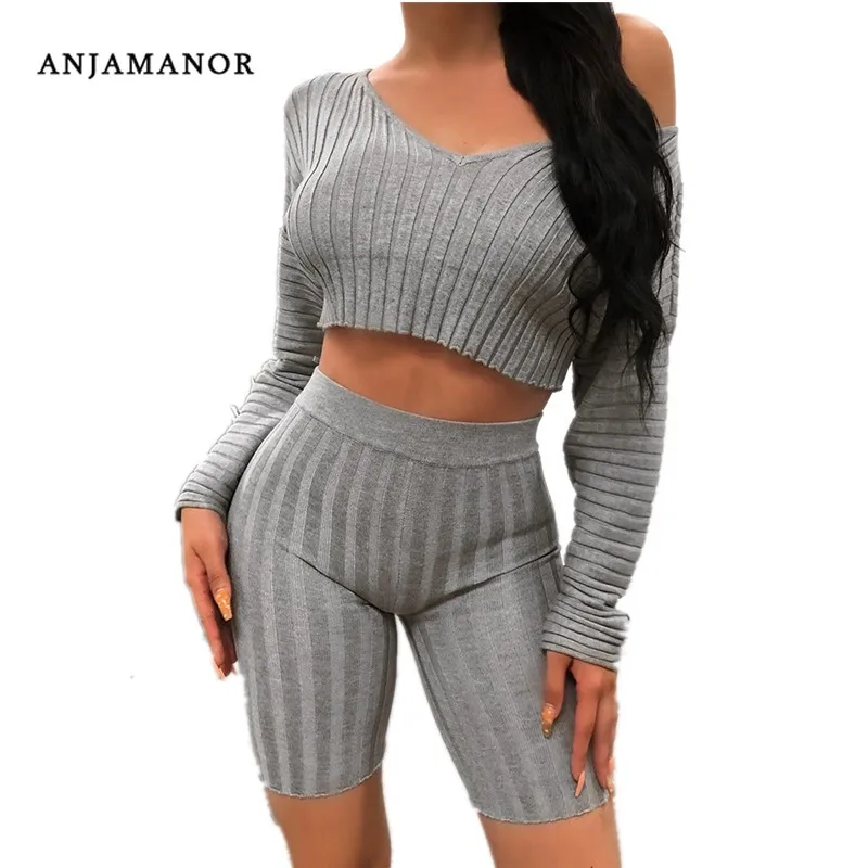 Buy ANJAMANOR Two Piece Set Winter 2019 Lounge Wear Sweater Knit Suit Sexy Fall Outfits Long Sleeve Mat