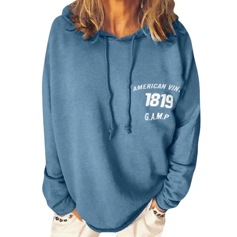 Buy Women Simple Spring Long Sleeve Outerwear Cute Cartoon Letter Print Hoodies Autumn Loose Hat Collar