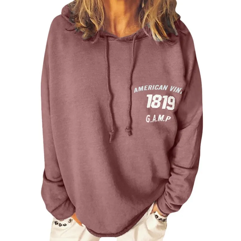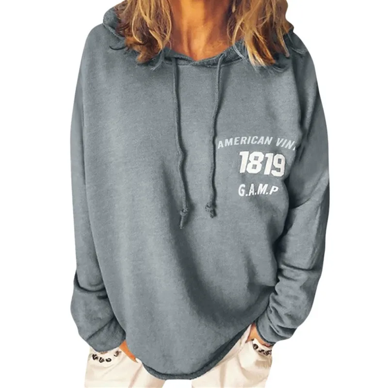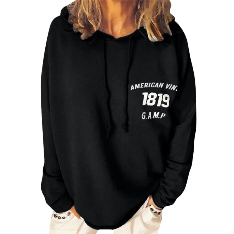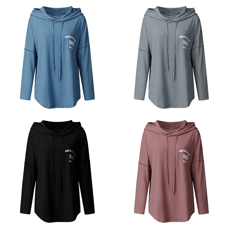 Promo Women Simple Spring Long Sleeve Outerwear Cute Cartoon Letter Print Hoodies Autumn Loose Hat Collar