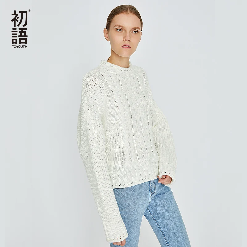 New Toyouth Basic Twist Solid Sweaters Women O-Neck Knitted Sweater Long Sleeve Female Pullover Casual