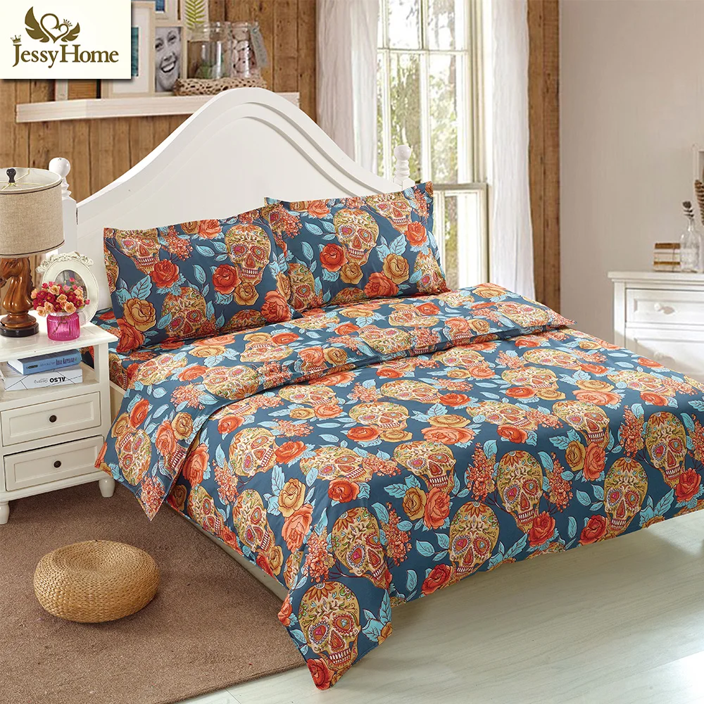 Promo Christmas Gift 3D Halloween Bedding Set Skull Bedding Set Christmas Bedding 4Pcs Coverlet Twin Quee
