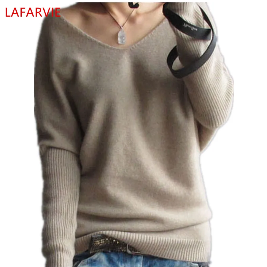 Promo Hot Sale Soft & Comfortable Bat-like Pullovers Female Cashmere Sweater Pure Casual V-neck Short Des