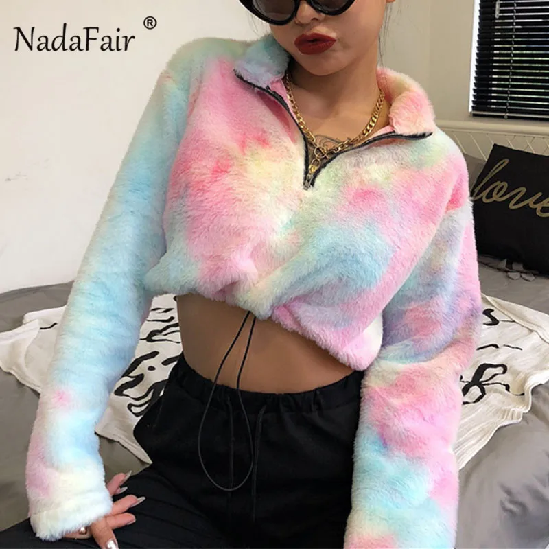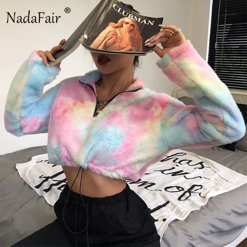 Today i want to review about Nadafair Zipper Tie Drying Long Sleeve Cropped Hoodie Women Autumn Winter Pullover Short Faux Fur F. I uncover this cool product from China Online Store, best manucafturer.