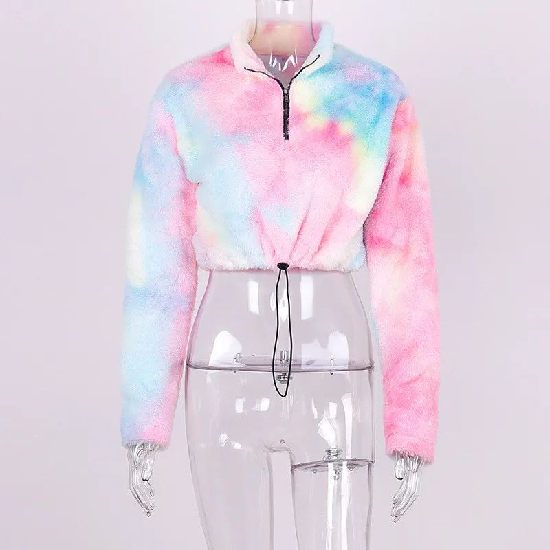 Buy Nadafair Zipper Tie Drying Long Sleeve Cropped Hoodie Women Autumn Winter Pullover Short Faux Fur F