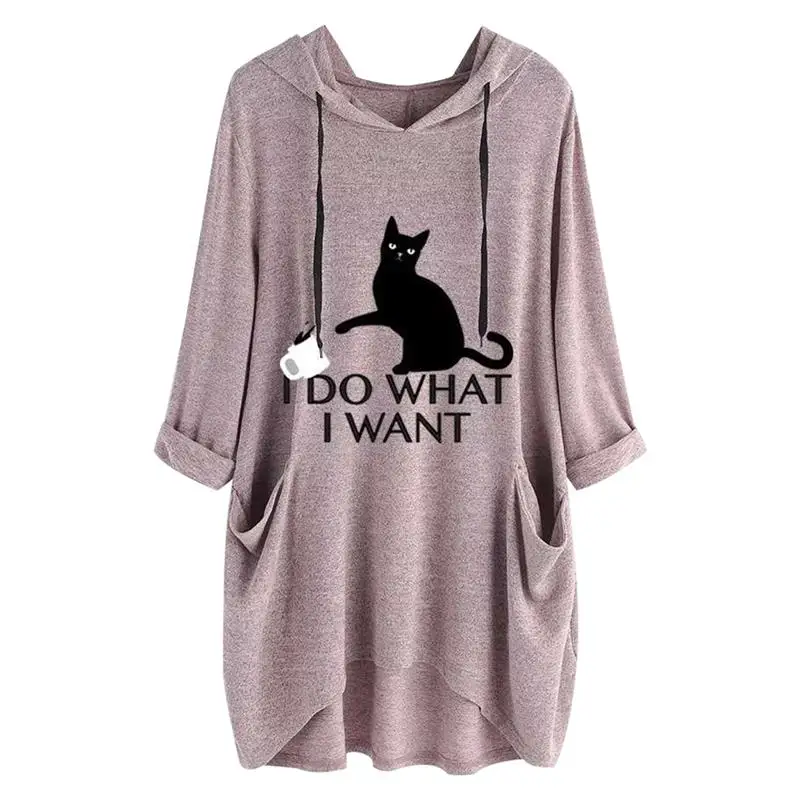 Promo Plus Size Hoodies Women I Do What I Want Letter Print Cat Ear Pattern Pocket Oversized Sweatshirt A